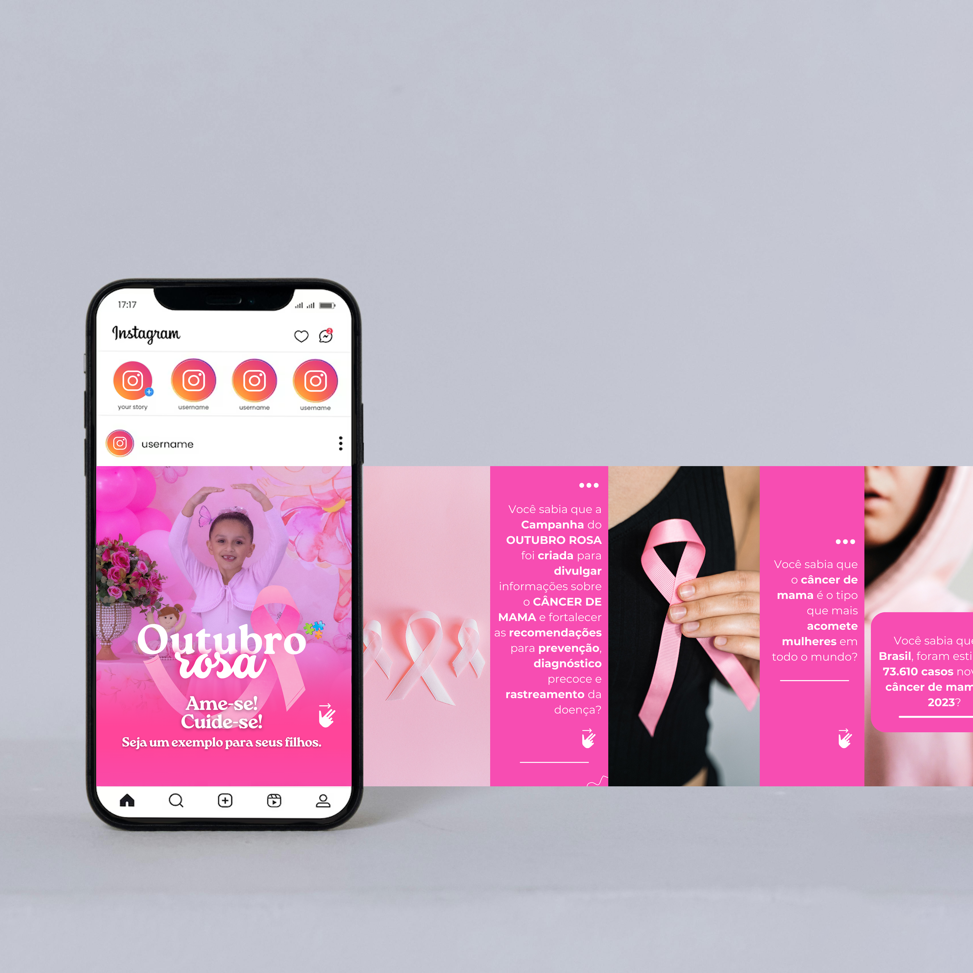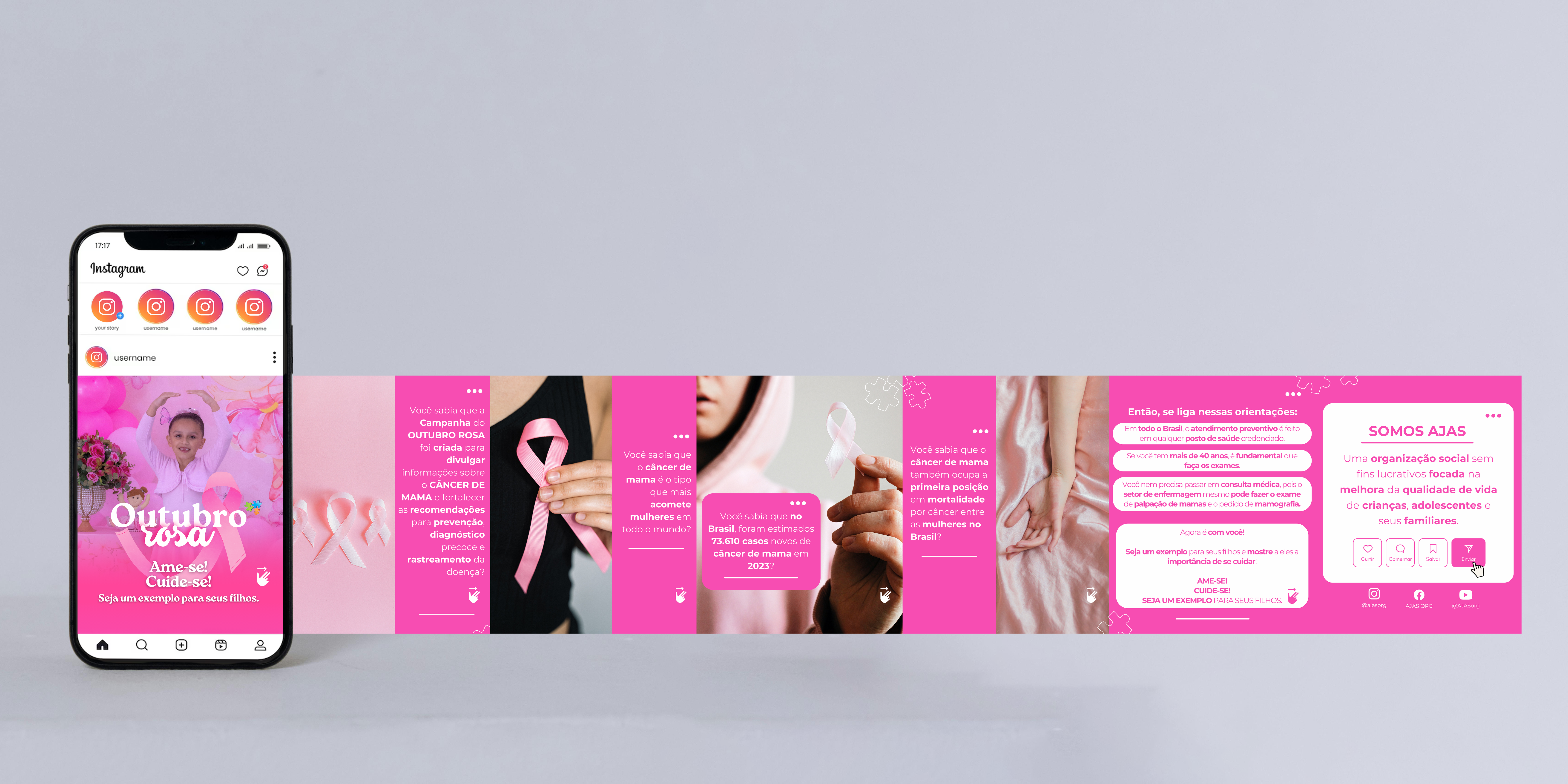 Carrossel feito para manter a presença digital e alertar sobre o outubro rosa. Ver Post.